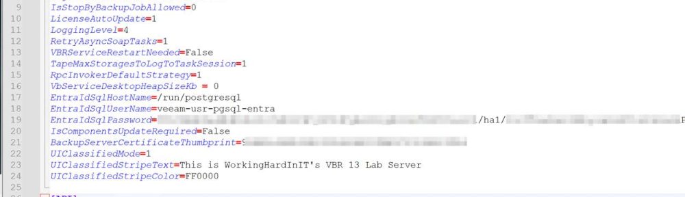 I will demonstrate this with a handy but benign setting (in case you make a mistake). We will display a banner in the console GUI. Veeam introduced this years ago, but it makes for a nice, GUI-visible lab demonstration.