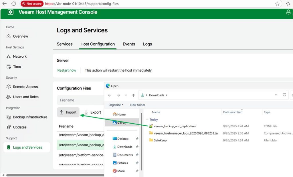 You manage these configuration files via the Veeam Host Management Console. Also see https://helpcenter.veeam.com/docs/vbr/userguide/hmc_perform_maintenance_tasks.html?ver=13#managing-configuration-files for more inf0